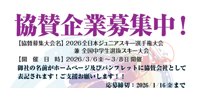 2026年 全日本ジュニアスキー選手権大会協賛企業募集について