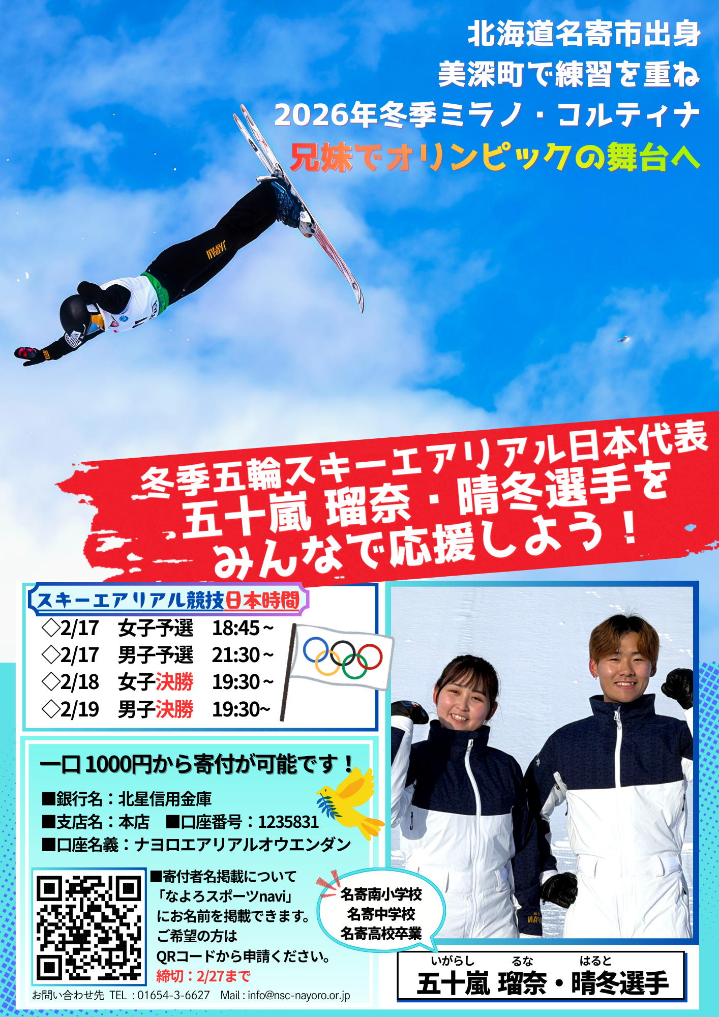 • Nスポーツコミッションなよろでは、五十嵐晴冬選手・瑠奈選手の挑戦を